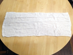 タオルを干した場所は福島市笹谷にある住宅の2階、天井があるベランダの物干しです。11月上旬に新品タオルを使い、水につけ絞ったうえで物干し竿にかけて24時間干しました。検体としてタオルを選択したのは、測定に使用するマリネリ容器に詰めるのに適しているからです。